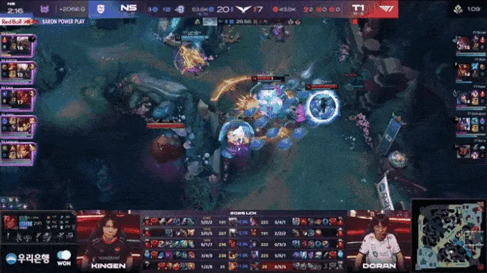 比赛第22分钟,Doran阿萝拉率先阵亡,NS厄塔汗团先后打出1换4大胜。