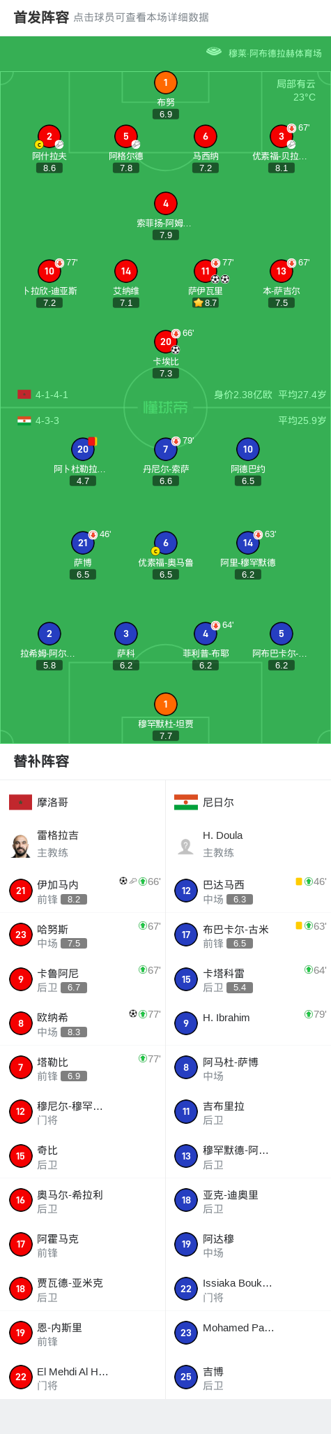 第51分钟,贝拉马里送助攻,卡埃比完成破门,摩洛哥3-0